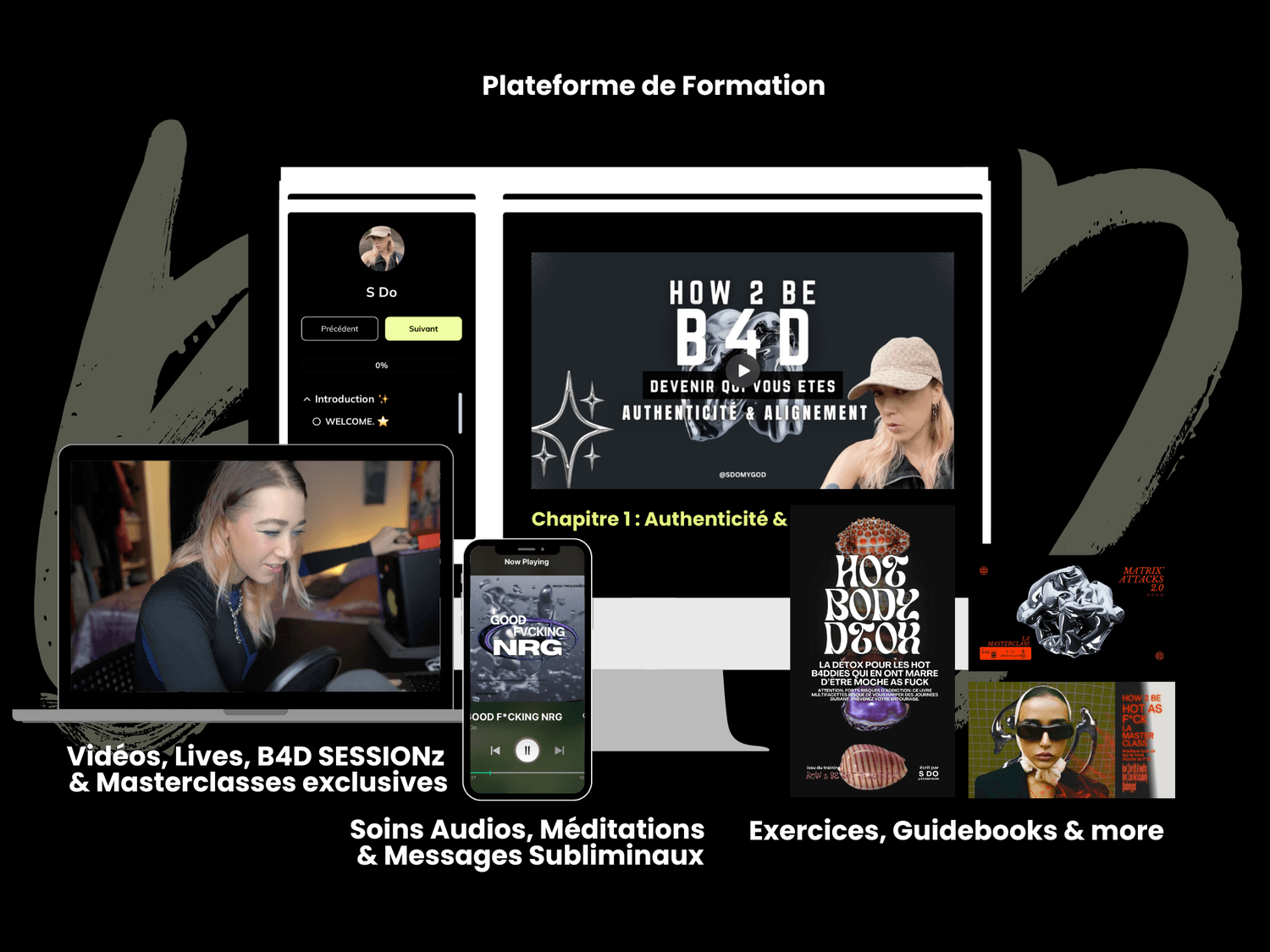 HOW 2 BE B4D ACADEMY, c'est une Exploration initiatique. De toi, tes nuances, de tes spécifités. Une autoalchimie de ton Chaos en Puissance Créatrice.